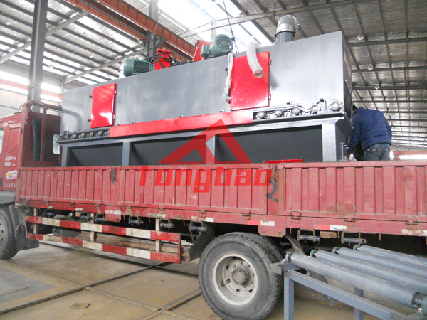 杭州某石材廠家拋丸生產(chǎn)線裝車發(fā)貨,該拋丸生產(chǎn)線采用輥道通過式輸送,內(nèi)部兩臺拋丸機同時拋射,覆蓋面積大,拋射均勻,效率高。